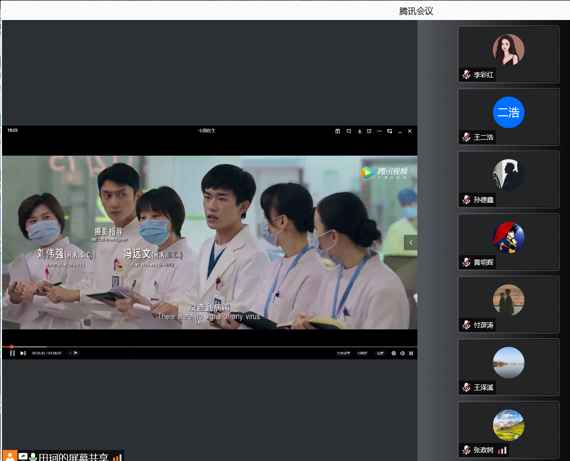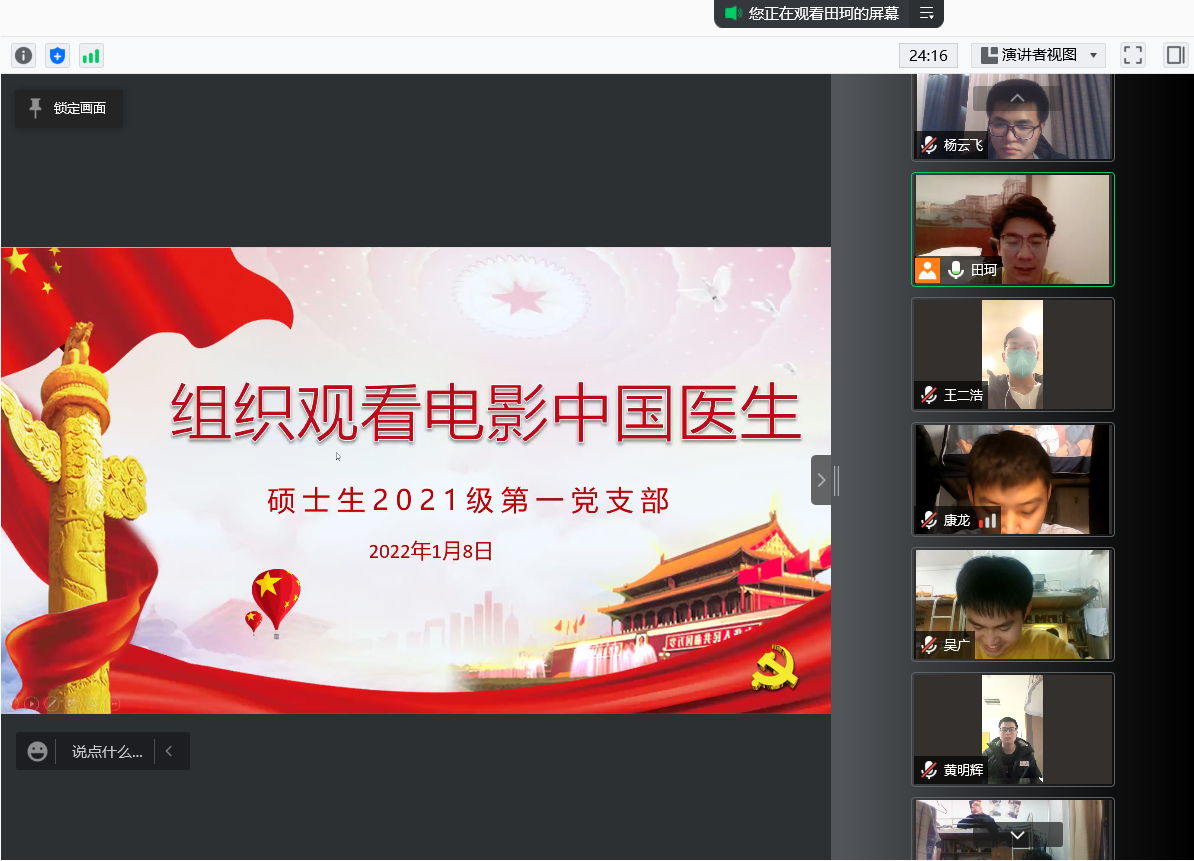 为了弘扬抗疫精神,激发党员同志们的责任感与使命感,2022年1月8日晚18:00,绅士漫画 硕士生2021级第一党支部组织支部成员线上观看电影《中国医生》,此次会议由支部书记田珂同志主持。