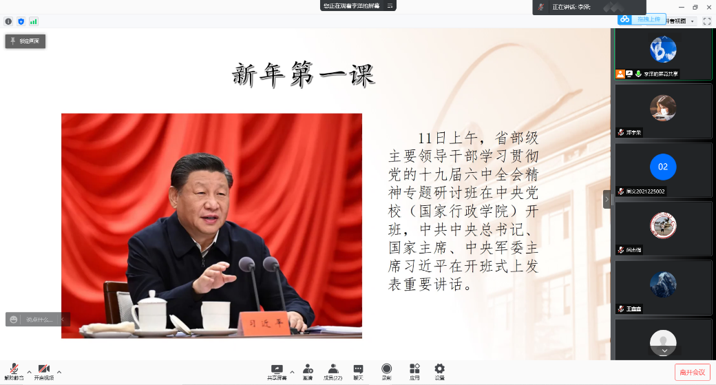 2022年1月14日下午15:30,绅士漫画 领航先锋党支部组织支部成员线上学习习近平总书记“新年第一课”。本次会议由支部副书记李泽同志带领大家学习,支部全体党员参加了此次活动。