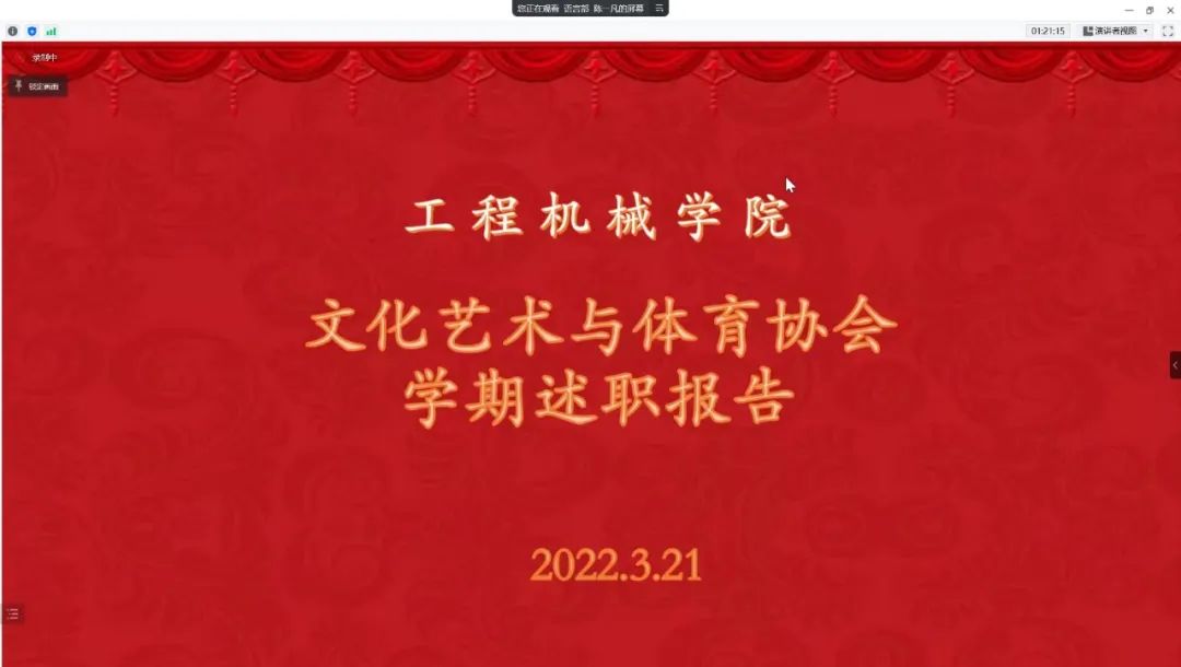 2022年3月21日晚19时,绅士漫画 文化艺术与体育协会2021年秋季学期述职报告以线上腾讯会议的形式如期举行,本次会议由语言部陈一凡主持,参加会议的有院文体协会指导教师杨文佳,主席团成员孙胤祺、徐默、李泽坤、罗晨豪、张清僖,各部门部长与部员。