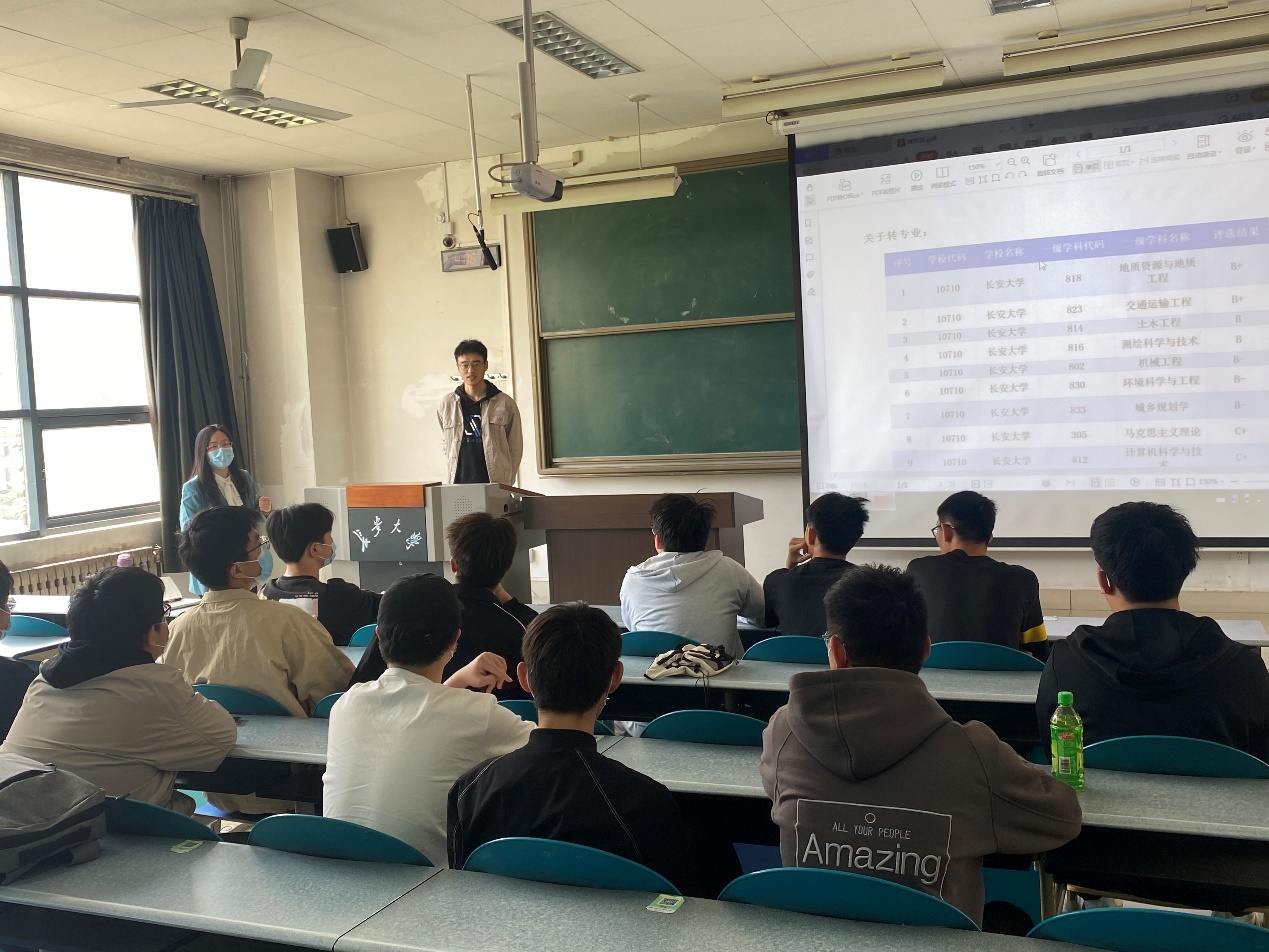 讲解部分结束后,任毅行学长与班级同学进行了充分的交流,侯旭栋同学提出“大学生活如何分配时间”的问题,任毅行学长结合自己本科时期的经历,指出大学生活应该首先以学业为重,同时注意锻炼身体,结合自身实际做出最适当的安排。