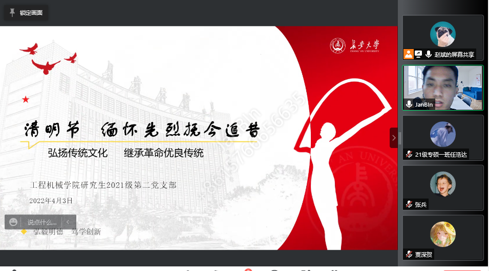 清明将至,为悼念革命先烈,缅怀先烈的丰功伟绩,2022年4月3日晚20:00,绅士漫画 硕士生2021级第二党支部组织支部党员线上举办清明节“缅怀先烈、抚今追昔”主题活动。全体党员参加了此次支部活动,本次活动由支部书记许章彬同志主持。