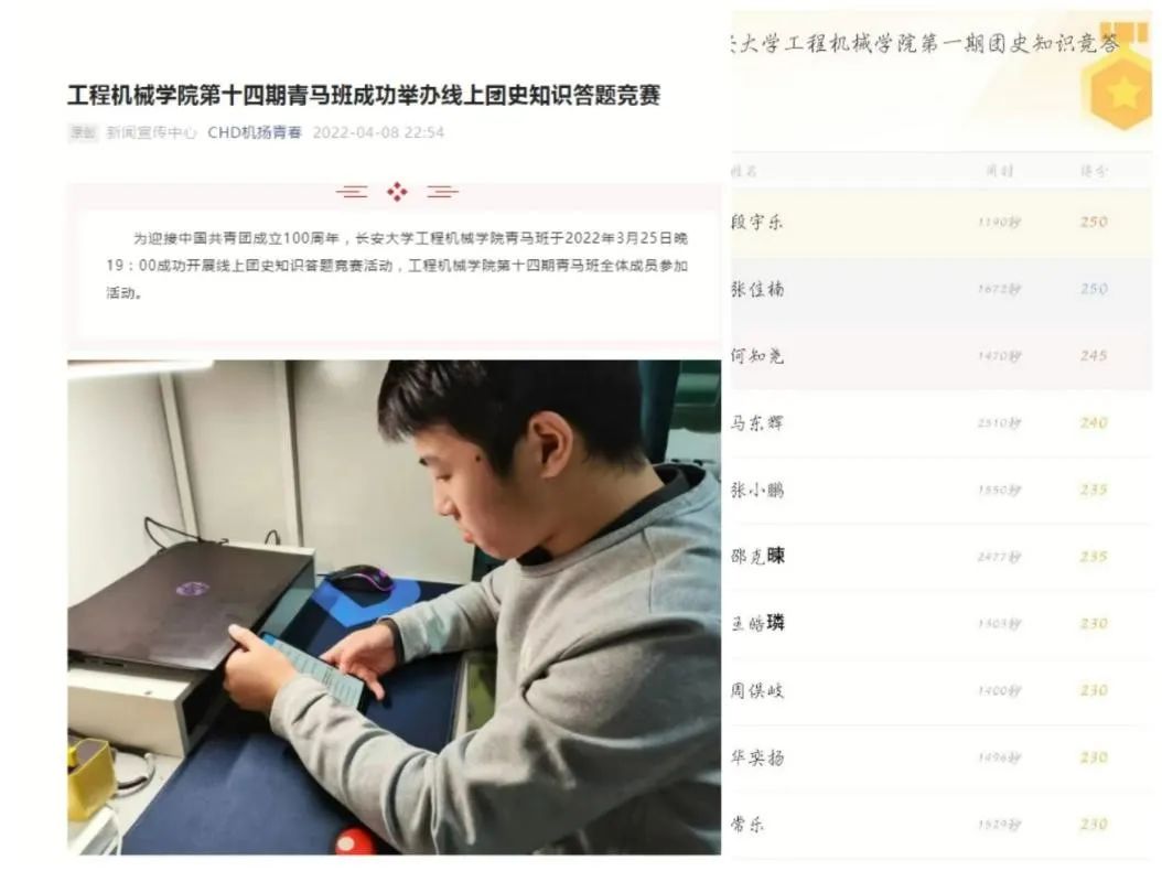 组织学院青马班开展线上团史知识竞答