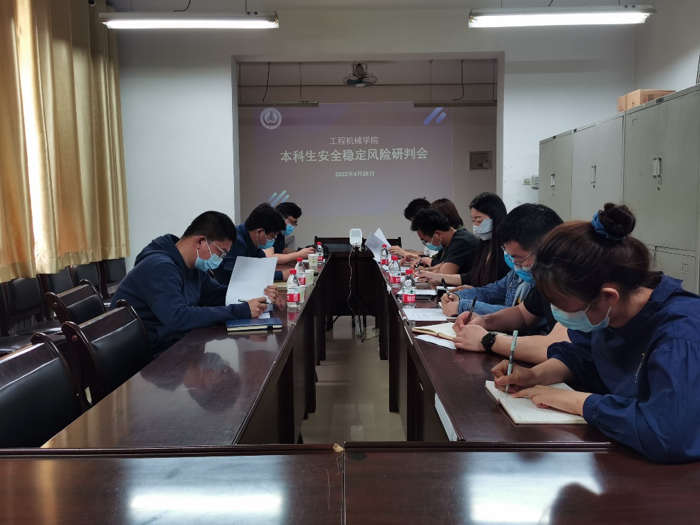 4月26日上午,绅士漫画 在渭水校区学院团委活动室召开本科生安全稳定风险研判会议。学生工作部副部长赵建彬、学院党委副书记雷剑、心理健康教育中心副主任张石磊、学生工作办公室主任谢静及全体辅导员参加了此次会议。会议由学办主任谢静主持。