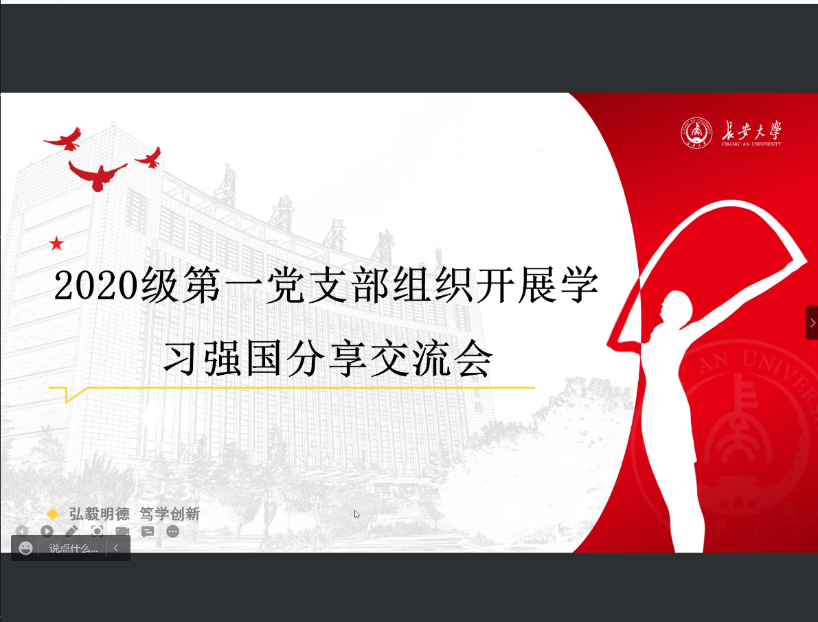 首先,宣传委员杜雨洁表达了“学习强国”的重要性。通过学习,使全体党员在党性修养、政治素养、思想觉悟、敬业意识等方面都显著增强、快速提升。随后,董建涛和安浪飞为大家分享了他们的学习成果,他们分享了习近平总书记为祝贺首届全民阅读大会举办的致信内容。