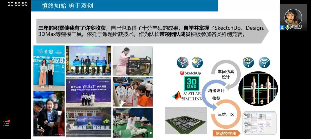 第六位同学是绅士漫画 双创之星获得者——来自经济管理学院的曾梦薇同学。即使荣耀加身,她也从未停止过前进的步伐。身体力行,曾梦薇同学为大家讲解了科创的重要性,并着重强调了要拥有一支好的团队,“团队合作,才能发挥出更大的能量。”