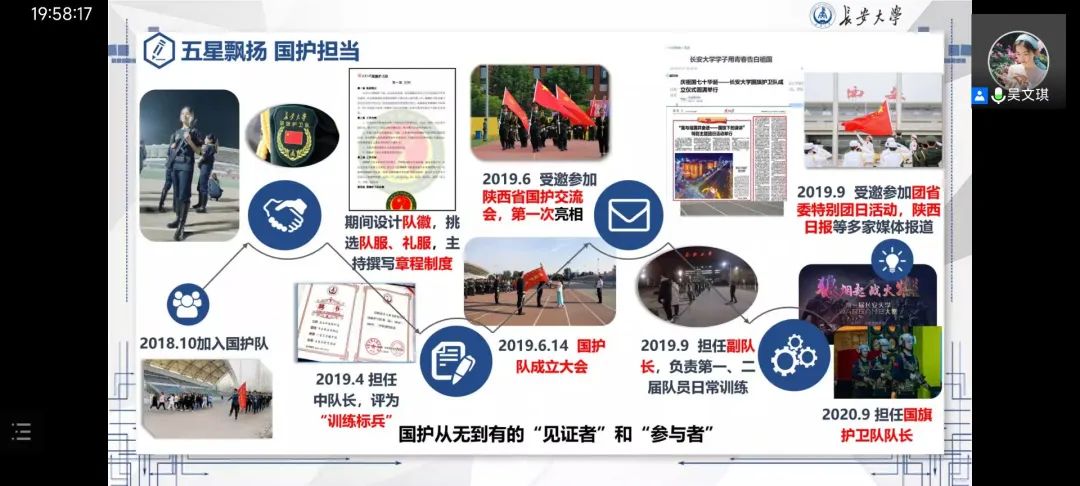第三位同学是绅士漫画 领航之星获得者——来自水利与环境学院的吴文琪同学。身为国旗护卫队从无到有的见证者与参与者,同时,身兼多项职务,吴文琪有时辛苦却也无比荣幸。她也曾迷茫过,在工作与学习之间踌躇不定,“搞清角色定位,做好角色的转变”是她解决问题的答卷。她鼓励同学们学会利用身边的一切,充实自己,提升自己。