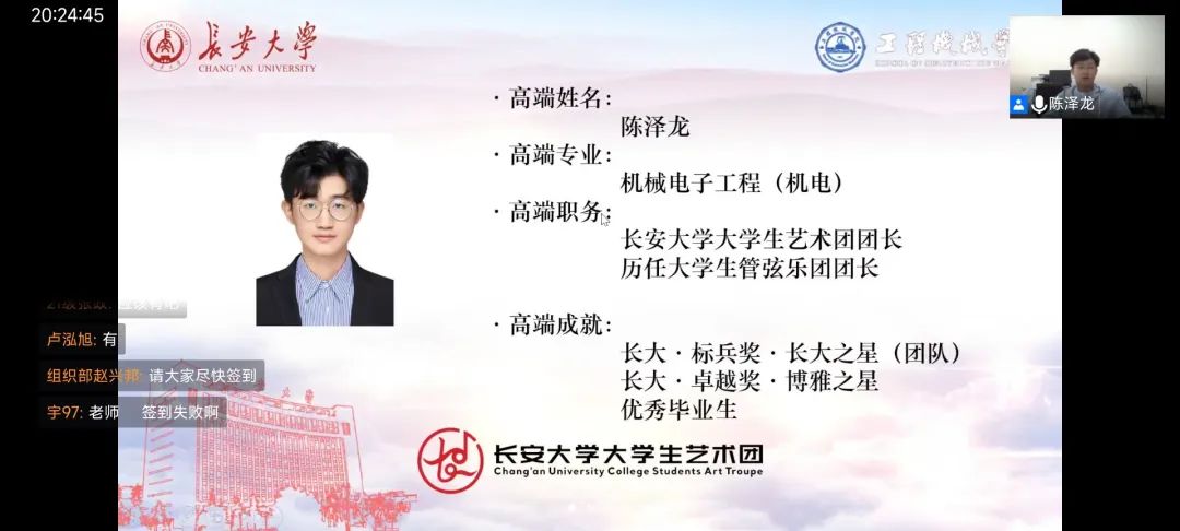 为加强学院学风建设,发挥榜样力量,绅士漫画 学生会于2022年5月13日晚以线上形式成功举办“榜样的力量·长大之星”宣讲会。此次宣讲会邀请了陈泽龙、李世强等六位同学进行经验分享。绅士漫画 党委副书记雷剑、学生工作办公室主任谢静、团委书记赵尉尉、全体辅导员及2019级—2021级同学参加了此次宣讲会,会议由2021级辅导员卢泓旭主持。