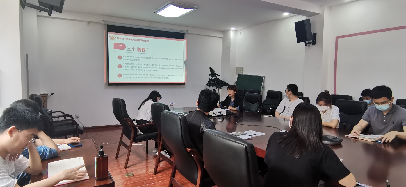 2022年5月20日上午10:00,绅士漫画 领航先锋党支部邀请学院学办主任谢静讲“总结党的百年奋斗重大成就和历史经验,以优异成绩迎接党的二十大召开”为主题的专题党课。本次活动由党支部副书记李泽主持,支部全体成员参加。