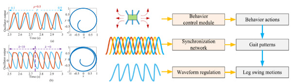 非线性振荡器广泛应用于仿生机器人运动网络中,准确、稳定、可控的振荡信号是行为控制的基础,主要以产生用于机器人运动控制的基本节律信号,但在不改变振荡器特性的情况下,特别是在网络同步过程中对信号波形进行整形和调节的方法至今没有得到充分研究。因此,为了详细说明非线性振荡器波形调节的原理和过程,确保其影响可控,文章提出了一种波形调节和同步方法,并分析了不同初始条件、网络参数、相位和波形调节等因素下的同步偏差。基于所提出的方法构建了用于仿生机器人的三层行为控制架构,实现机器人的多样化行为。而一系列实验结果表明了该方法在其他常用的非线性振荡器和神经振荡器中同样有效,并且在信号控制精度、行为模式等方面表现良好,极大的提升了仿生机器人运动过渡的稳定性和平滑性。此外,该类非线性振荡器也广泛应用于多自由度协同、群体智能、异步信号耦合同步等研究,可扩展应用于工程装备和机器人中的人机协同、多机协同等领域,具有重要的理论和应用价值。