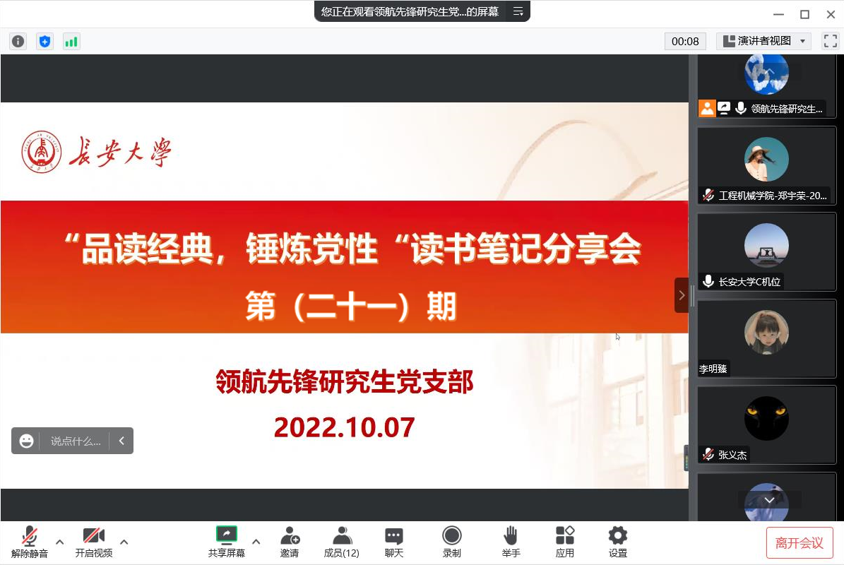 2022年10月7日上午10:00,绅士漫画 领航先锋党支部组织支部成员线上开展了第二十一期读书笔记分享活动,本次活动由支部成员付彦涛做读书笔记分享。支部全体党员参加了此次活动。