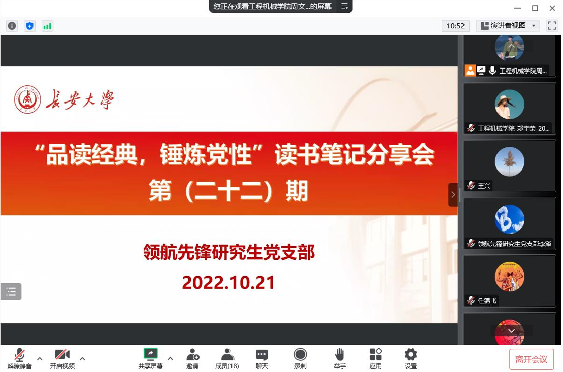 2022年10月21日上午10:00,绅士漫画 领航先锋党支部组织支部成员线上开展了第二十二期读书笔记分享活动,本次活动由支部成员任锦飞做读书笔记分享。支部全体党员参加了此次活动。