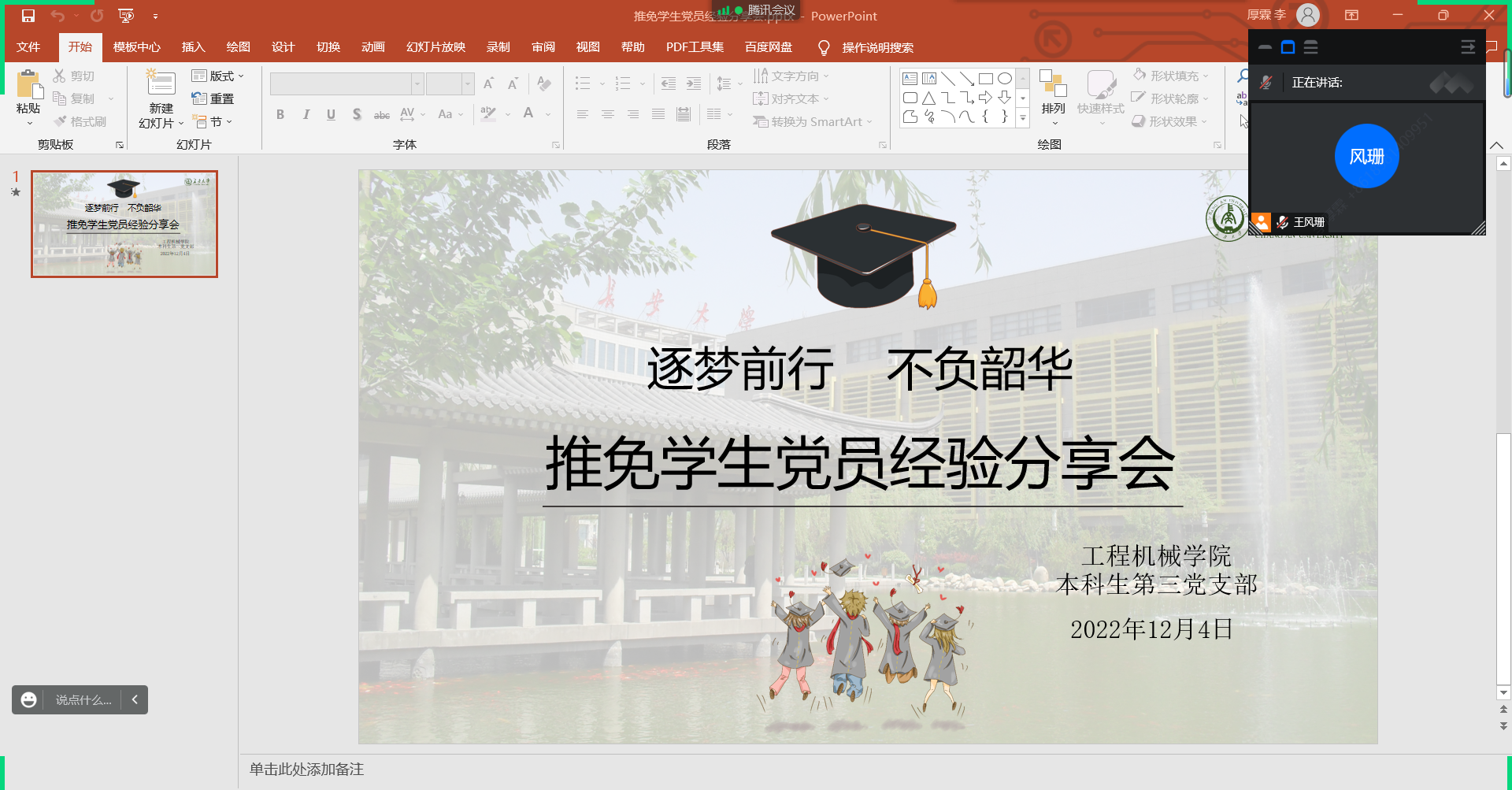 为进一步发挥绅士漫画 学生党员的先锋模范作用,聚焦学生学业、读研深造等具体问题,绅士漫画 本科生第三党支部开展办实事活动。2022年12月4日19:00,推免学生党员经验分享会在腾讯会议以线上方式召开,各年级学生线上参加。本次活动由本科生第三党支部书记王风珊主持。