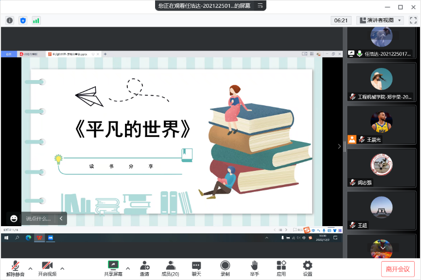 2022年12月2日,绅士漫画 领航先锋研究生党支部组织支部成员线上开展了第二十五期读书笔记分享活动,本次活动由支部成员任浩达做读书笔记分享。支部全体党员参加了此次活动。
