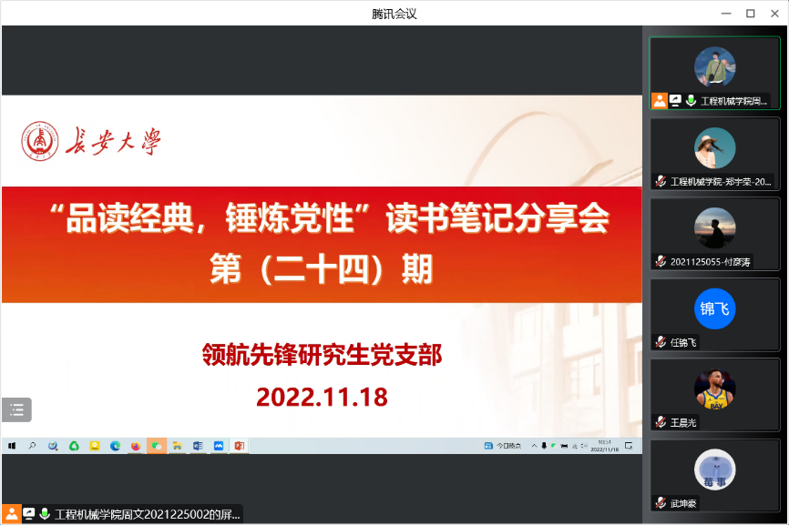 2022年11月18日,绅士漫画 领航先锋研究生党支部组织支部成员线上开展了第二十四期读书笔记分享活动,本次活动由支部成员武坤豪做读书笔记分享。支部全体党员参加了此次活动。