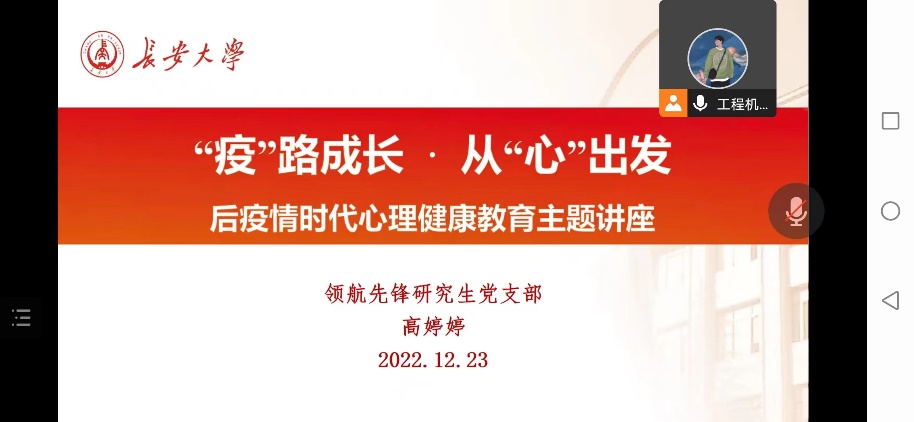 2022年12月23日上午10:00,绅士漫画 领航先锋党支部组织开展“疫”路成长·从“心”出发——后疫情时代心理健康教育线上主题讲座。本次会议由支部副书记周文主持,支部书记高婷婷讲专题讲座,支部全体党员参加了此次活动。