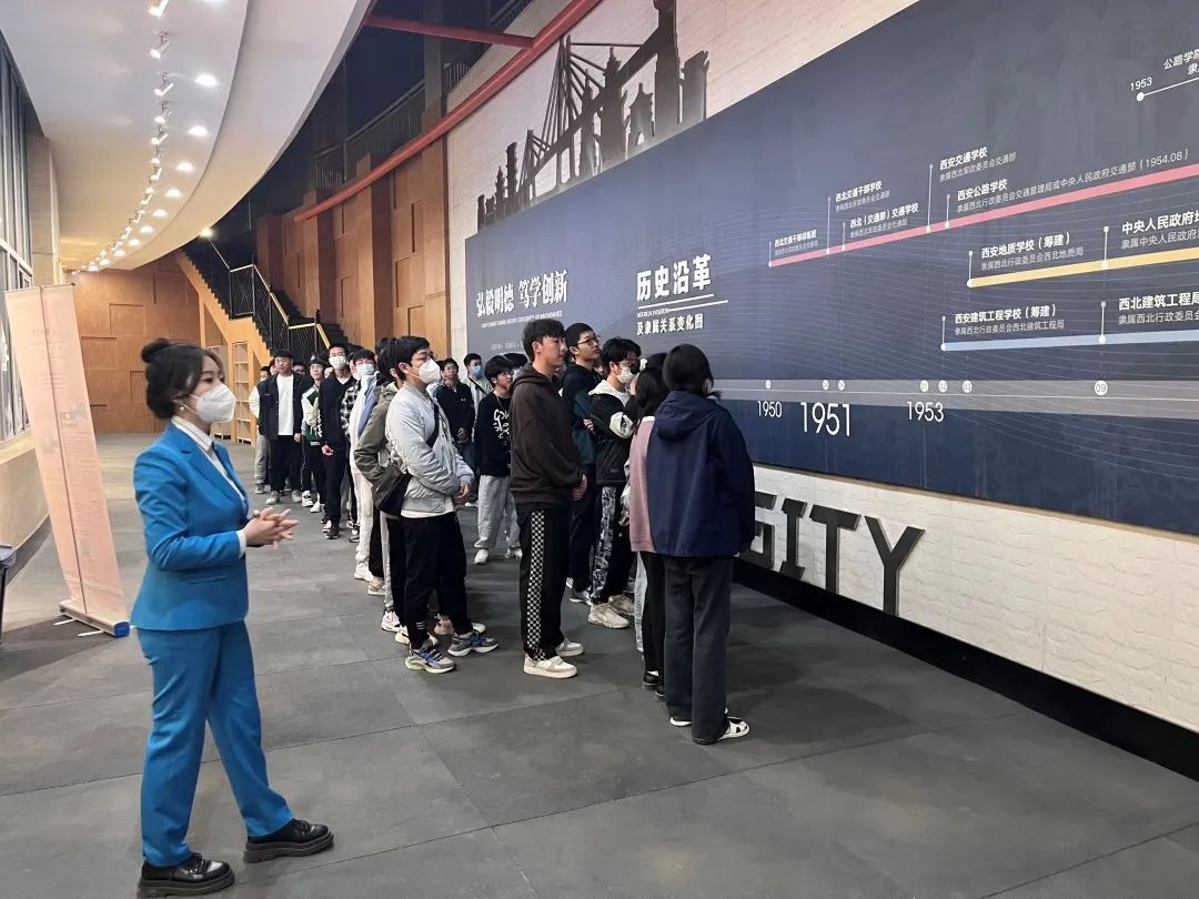 绅士漫画 校史馆分前廊、前厅、序厅、西安公路交通大学厅、西安工程学院厅、西北建筑工程学院厅、绅士漫画 厅、求索厅、校友厅、致远厅十个部分,展示档案、珍贵实物等展品近300件(套),照片1500余张。同学们跟随讲解员的步伐整齐有序地步入馆内,走进绅士漫画 70余载的奋斗历史。讲解员从绅士漫画 自建校以来具有重大意义的校史事件和时间节点出发,从红色基因、公路建设、技术探索、创新发展等方面向同学们讲述先辈们勇于创新、自强不息的奋斗历程,生动诠释了“弘毅明德,笃学创新”的校训内涵。