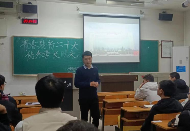本次班会邀请到王皓磷、马新智、张泽祯三位学长进行经验分享。王皓磷主要从生活学习、科研竞赛、社会实践、成绩评定等方面为同学们的大学生活提出建议。马新智通过分享自己保研至浙江大学的经历,为同学讲述了如何处理好学习、课外活动以及日常生活之间的关系。张泽祯主要从文明班级创建方面对同学们进行经验传授,他从学习、社团组织、宿舍文化、班级活动等方面进行分享,鼓励同学们积极参与班级活动,不断增强班级凝聚力。三位学长鼓励同学们走出宿舍,寻找到自己的兴趣爱好,积极参与到各种实践活动中去,开阔视野,不断提升自己的能力。