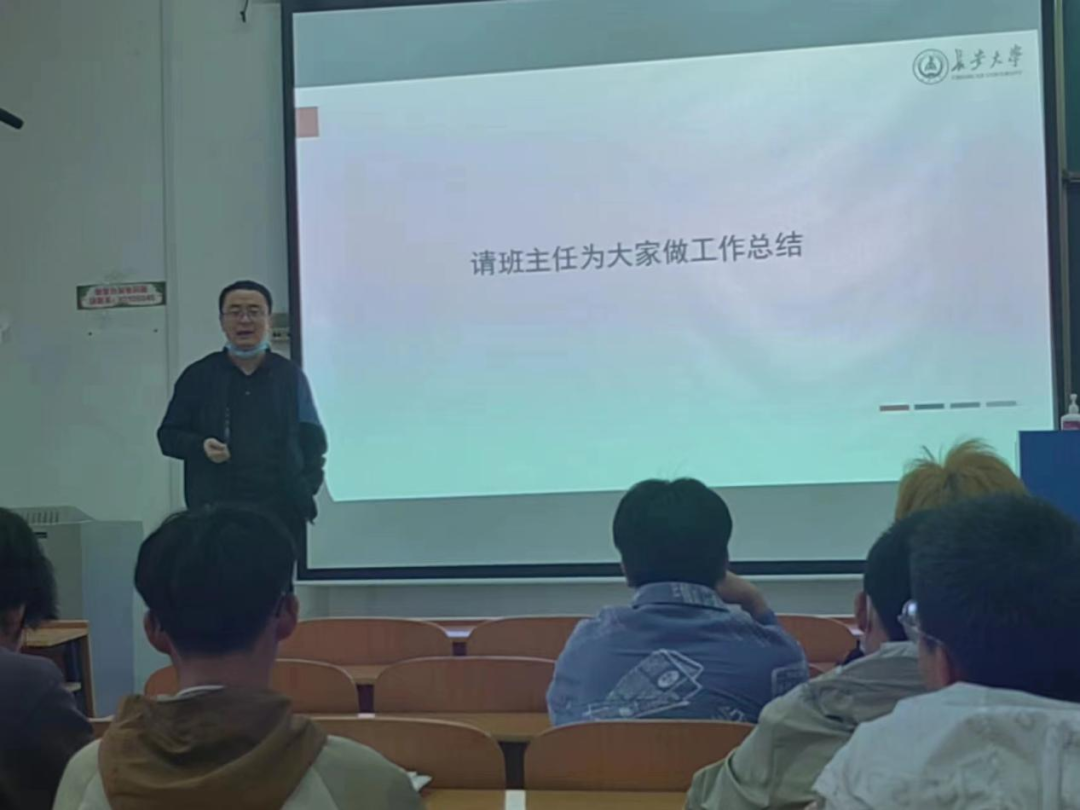 最后,班主任沈建军和辅导员王德佳作会议总结,从学习和生活两个方面详细分析,在上学期的基础上发现问题、提出问题,在竞赛问题和保研问题上进行了简单指导,为大家明确了方向。并勉励同学们要踔厉奋发、笃行不怠,在日常学习和生活中,时刻保持练技修能,知行合一的状态,度过一个充实多彩的大学生活。