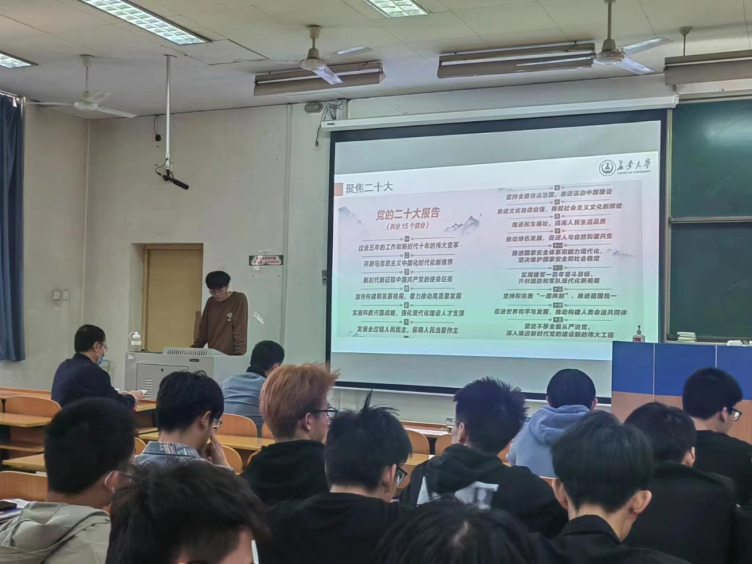 会上,马玉带领同学们再次聚焦党的二十大,深刻领悟党的二十大精神,同学们进行深入探讨。随后,马玉对上学期工作进行小结并对新学期进行规划,鼓励同学们要注重劳逸结合,努力学习、奋发图强,成为有理想、敢担当、能吃苦、肯奋斗的新时代好青年。朱烨、高智和李颖楠三位同学进行学习经验分享,为大家提出学习方法的建议。