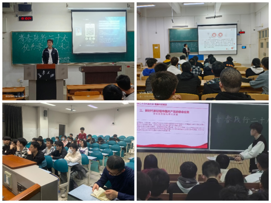 各班紧扣主题,结合班级学生需求,开展了形式多样的主题班会,内容涵盖党的二十大精神宣讲、雷锋精神学习、优秀学子助未来榜样引领、班主任辅导员答疑解惑、同学交流分享等内容。