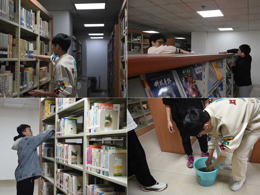 ▲图书馆书架卫生清洁志愿活动现场