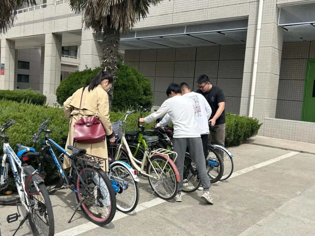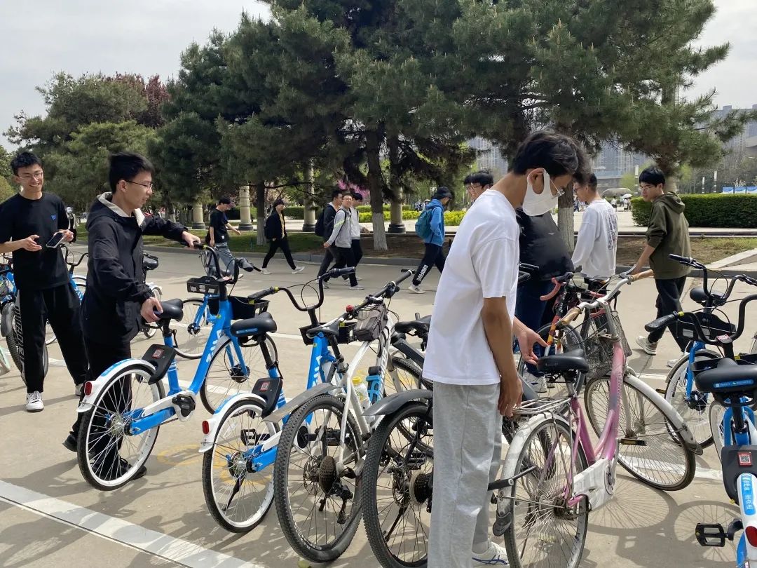 活动开始,党支部各位同志准时到达西区指定集合地点,支部书记杨文佳讲述此次活动的目的以及自行车摆放过程中的注意事项,组织委员于广澍进行具体活动安排。