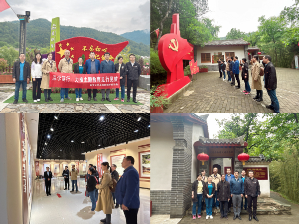 途中,学院一行赴商州区北宽坪红色教育基地开展主题教育实践研学。全体党员观看了红色影片《商洛1946》,共同参观了爱国教育展馆、党性体检中心、国防知识教育展馆和商洛县委县政府旧址纪念馆,感悟革命年代的艰辛岁月。在纪念馆前,面对党旗,全体党员庄严宣誓,嘹亮的誓言响彻现场。