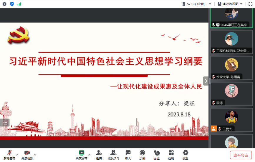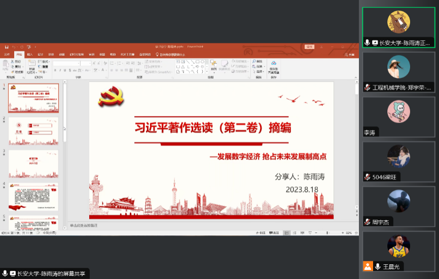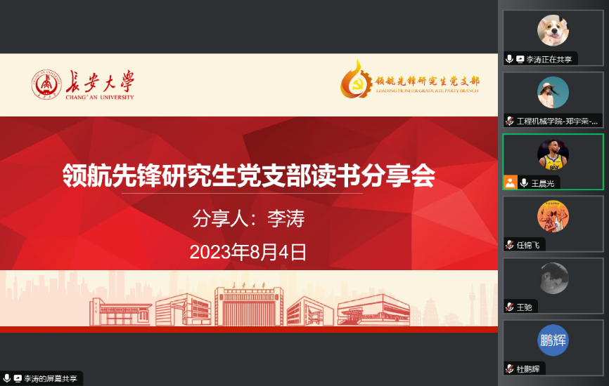 按照学校暑期主题教育学习不间断的工作安排和总要求,绅士漫画 领航先锋研究生党支部在暑期继续保持理论学习不断线,坚持开展两周一次的线上读书分享活动。