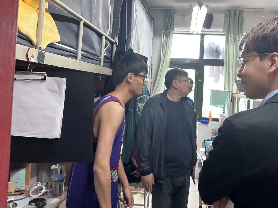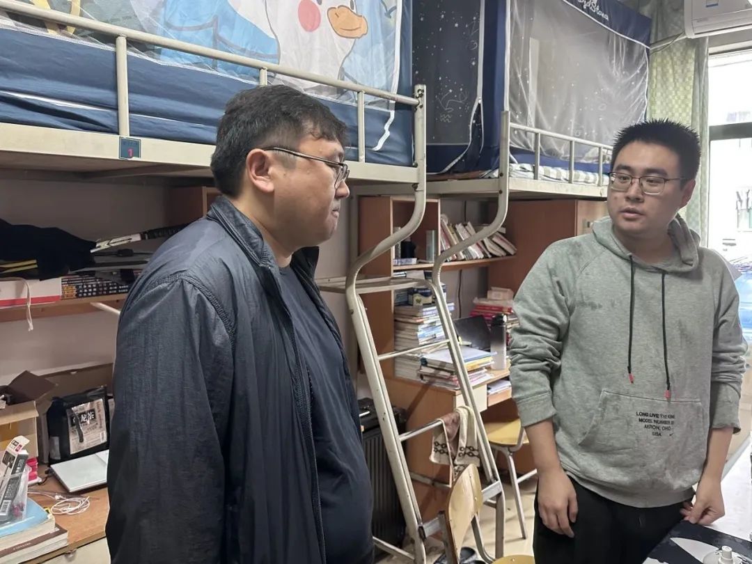 在走访各年级宿舍的过程中,雷剑及各年级辅导员询问了同学们的假期去向,并提醒外出的同学注意交通安全,选择正规交通方式,防止意外伤害。对于留校的同学,则提醒同学们合理安排假期时间,注意宿舍用电安全、食品安全、防火防盗防诈骗,尤其是要提防传销、求职陷阱等。此外各位老师还对大四年级学生的就业、考研情况以及其他各年级学生的学习生活情况进行了详细询问,并叮嘱同学们养成良好的个人卫生习惯,共同营造良好的宿舍环境。