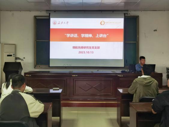 2023年10月13日,绅士漫画 领航先锋研究生党支部组织支部成员在学院四楼报告厅开展了第四十四期“品读经典,锤炼党性”读书分享暨第一期“学讲话、学精神、上讲台”主题教育,本次主题教育对照支部主题教育学习安排,由支部组织委员王晨光领学。