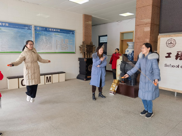 活动开始,学院工会主席魏立基向全体女教职工送上“三八节”的美好祝福,愿大家身体健康、心情愉悦、快乐工作、幸福生活。接着,工会委员吕春芬介绍了趣味活动及比赛规则,而后轻松解压的快乐跳绳活动开始了,整个下午沉浸在运动的欢声笑语之中。最后,学院工会委员张志峰、曹学鹏老师向女老师们发放了奖品和节日慰问品。