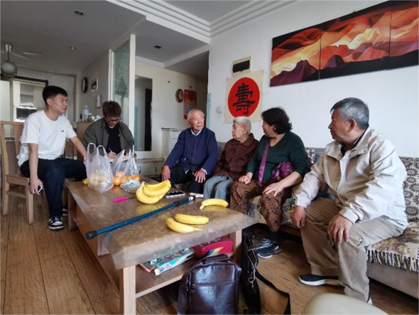 为全面贯彻落实党的二十大精神,加强支部交流,提升党建工作质量,5月10日,绅士漫画 领航先锋研究生党支部(以下简称“领航先锋党支部”)与离退休处党总支退休第十二党支部(以下简称“退休第十二党支部”)开展“前行不忘耕耘者,春日慰问传真情”第六期老少帮扶共建活动。在退休第十二党支部书记闫海卿的带领下,领航先锋党支部成员张杰和田文浩一同走进方炳炎、刘德芳、孙可浚和杨贵森四位退休教师的家中,并向他们献上了90岁生日的诚挚祝福。