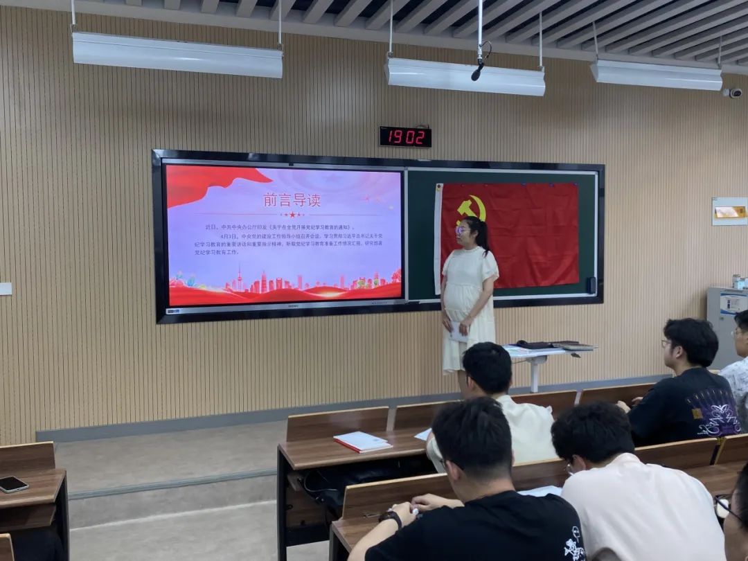 为进一步深化对加强党的纪律建设重要性和忽视党纪、违反党纪问题危害性的认识,绅士漫画 本科生第一党支部与第四党支部于2024年5月24日19:00在WX2209教室开展党纪学习教育。本次党纪学习教育由本科生第四党支部书记杨文佳领学,第一、第四党支部全体成员参加。
