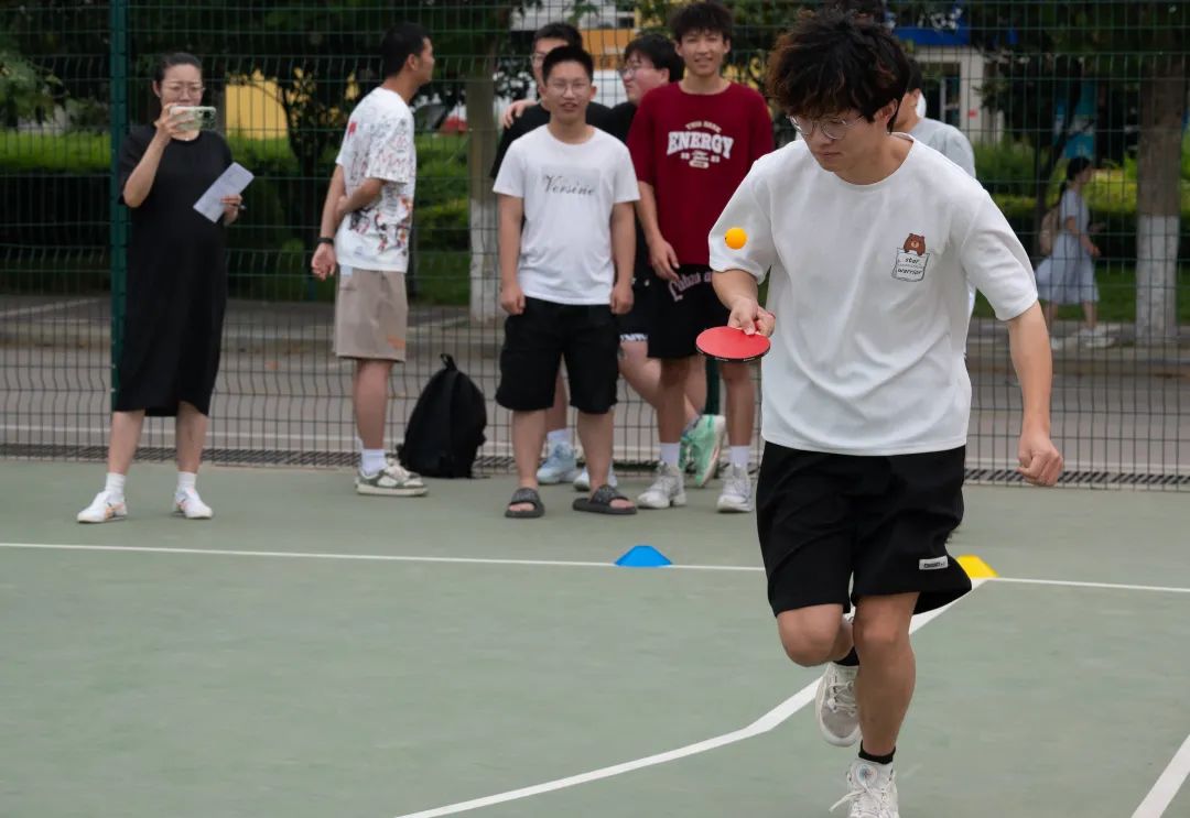 本次活动共有党史答题、乒乓球颠球跑、足球绕杆、踢毽子、运球投篮五个环节。项目间的击掌传递串联起了各个项目,充分体现团队合作的重要性,比赛中不仅展示出参赛队伍的精湛技艺,更传递出了运动的乐趣和团队合作的力量。