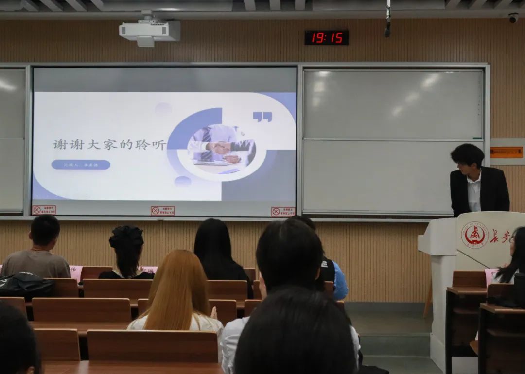 答辩结束后,由新闻宣传中心上一届主席团成员进行述职报告。主席团成员首先表示了对于在场所有候选人能力的认可,鼓励他们继续努力,共同推动新宣大家庭的发展,随后结合自己在新宣的工作经历向同学们提出了关于工作、学习上的建议。希望大家在今后的大学生活中,平衡好工作与学习的关系,能够更多的参与相关的学科竞赛,利用所学技能更好地发展自己。最后,由新闻宣传中心主任师佳瑶进行总结发言。