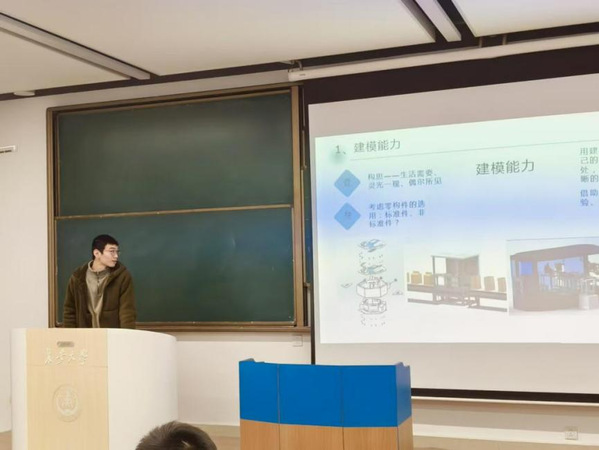 三位同学从参加科创竞赛的重要性、竞赛流程以及参赛注意事项等方面进行了详细的介绍,并结合自身的经验向同学们分享了比赛的必备技能和CAD制图建模等软件的使用方法,提醒同学们要合理安排时间,平衡好科创竞赛与专业学习,在参赛过程中保持良好心态,与团队成员进行良好的沟通与合作。
