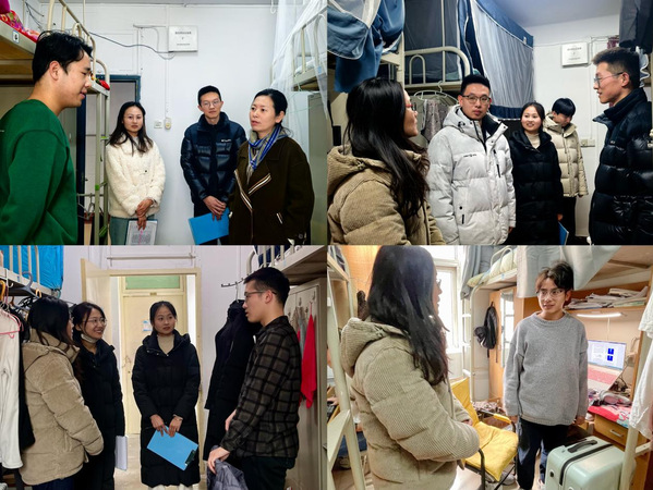 新学期伊始,为深入了解学生返校后的思想动态和生活状况,确保新学期各项工作顺利开展,2月24日至27日,绅士漫画 领导与各年级辅导员老师分别前往本科生与研究生宿舍,了解学生返校后的学习生活状况,为学生们送去新学期的关怀与问候。