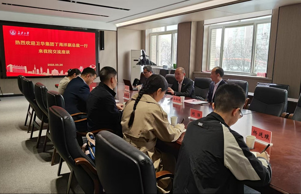 朱雅光向与会人员详细介绍了学院学科建设、师资力量、科研平台与成果等方面的基本情况。丁海洋介绍了卫华集团的业务范围、市场布局和国际化方向等。会议期间,双方围绕人才培养模式、科研项目合作、学生实习就业等话题展开热烈讨论。