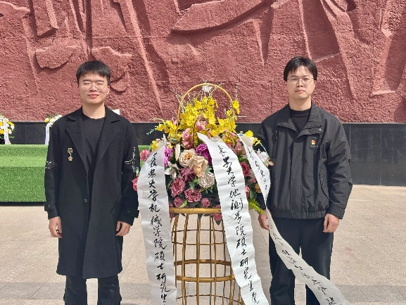 随后,全体党员步入烈士墓区,逐一向长眠于此的革命烈士敬献菊花、深鞠一躬,以实际行动表达追思与敬仰。最后,三名研究生党员代表领学革命先烈的英勇事迹,深入感悟烈士们为民族独立、国家富强所做出的伟大贡献。
