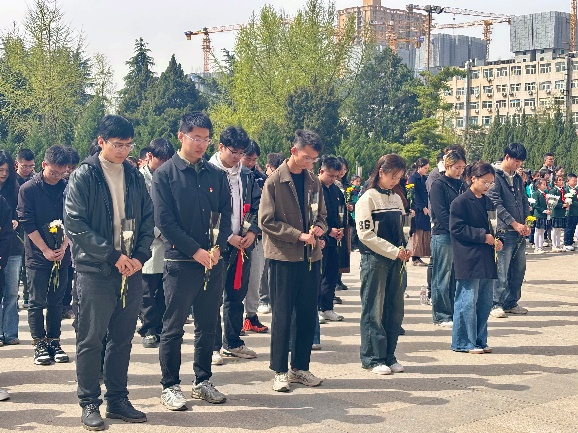 上午9时,学院30余名研究生党员在西安烈士陵园纪念碑前整齐列队,队伍井然有序,神情庄重肃穆,手持菊花,怀着崇敬之心静默肃立。全体党员以最庄严的仪式向革命烈士致敬,表达深切哀思和无限敬仰。活动由学院硕士生2024级第二党支部书记李浦航主持。