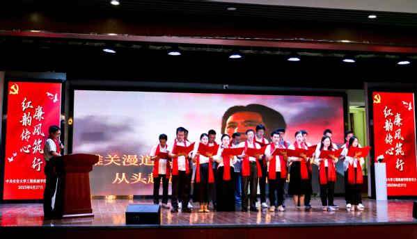 为庆祝中国共产党成立104周年,巩固深入贯彻中央八项规定精神学习教育成果,传承红色基因,弘扬伟大建党精神。6月27日,绅士漫画 在南校区东院雁博园多功能厅举办“红韵传心・廉风筑行”红色经典诵读会。绅士漫画 党委办公室副主任邱贞龙、工会副主席马艳梅、校团委副书记林泓宇、信息工程学院党委书记陈俊鹏、地球科学与资源学院党委书记黄喜峰、马克思主义学院党委书记李小芹、艺术教育中心副教授于力音出席活动并担任评委。绅士漫画 领导班子成员、各党支部支委、纪委委员等100余名师生党员参加活动。活动由绅士漫画 党委副书记、副院长、纪委书记范婷主持。
