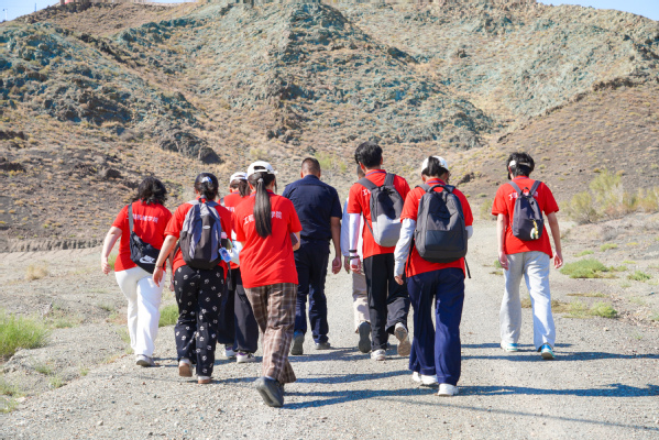 在矗立于祖国西北边陲的阿拉山口国门下,实践队员了解到阿拉山口铁路口岸作为亚欧经济活动、物流来往要塞,犹如瀚海明珠点缀于新丝绸之路,在“一带一路”中扮演着不可或缺的角色。讲解员为大家介绍了中欧班列的运行情况以及附近界碑的相关知识。实践队员远距离凝望神圣界碑,深刻体会到“国土神圣不可侵犯”的沉甸甸分量。此次国门之行,无疑是一堂生动且震撼人心的国家主权与安全现场课。它让实践队员们走出书本,真切触摸到国家主权的具象化体现,深刻理解了国家安全的重要性,更将忠诚与担当的种子深植于心中。