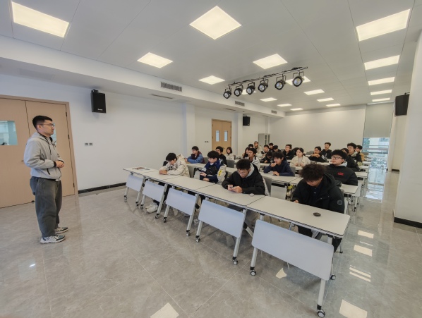 随后,班主任朱成成针对新生关切的问题展开补充讲解。他结合自身教学经验,耐心解答同学们关于“大学课程学习方法”“校园资源使用”“未来职业规划”等方面的疑惑,明确指出大一阶段需重点完成“适应学习节奏”“参与班级建设”“拓展兴趣能力”三大任务。同时,朱成成鼓励同学们积极建言献策,提出“班级建设金点子”,并表示会全力支持同学们的创新想法,与大家共同打造有温度、有活力的文明班级体。