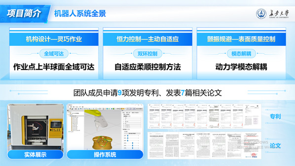 在项目推进过程中,团队成员分工协作、各展所长,累计申请9项发明专利(其中学生一作4项)、发表7篇EI检索论文,形成了丰硕的学术成果。同时,团队所有大四成员全部成功推免,其余成员均获得国家奖学金,实现了“科创竞赛与学业成长”的双丰收。项目相关技术及验证得到了埃夫特智能机器人股份有限公司和芜湖哈特机器人产业技术研究院有限公司的认可;相关研究成果收到了瑞典院士王立翚、俄罗斯佐林院士、哈尔滨工业大学机器人研究所副所长李瑞峰教授和中国科学院宁波材料技术与工程研究所原副所长杨桂林高级研究员等专家的联合推荐;团队的研究历程与事迹被《中华网》《学习强国》等国家级平台报道。