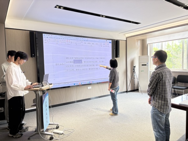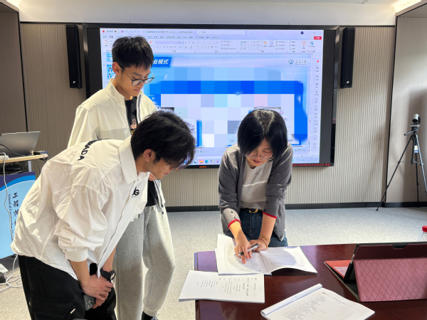 郭万金、许必颖根据王老师的指导建议,协助团队梳理问题、对接需求,为作品打磨提供全方位支持,助力团队高效吸收指导意见、完善作品细节。参赛团队成员认真聆听、详细记录,积极与指导老师交流探讨,就项目打磨过程中遇到的疑问逐一请教。